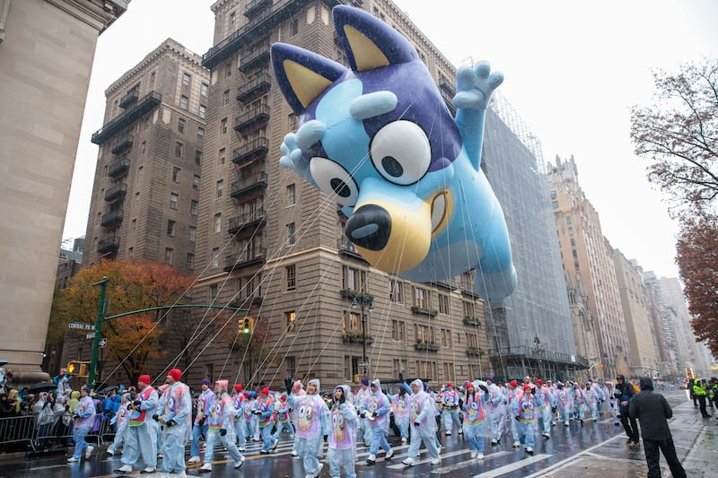 Macy's Hosts Its Annual Thanksgiving Day Parade In New York NEW YORK, NEW YORK - NOVEMBER 28: The Bluey balloon floats the Annual Thanksgiving Day Parade on November 28, 2024 in New York City. This is the 98th Macy's Thanksgiving Day Parade which was first held in 1924 and only paused from 1942 to 1944 during World War II. (Photo by Kena Betancur/Getty Images) (Kena Betancur/Getty Images)