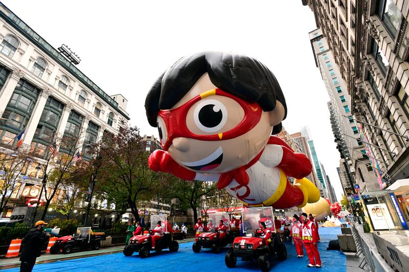 The World-Famous Macy's Thanksgiving Day Parade® Kicks Off The Holiday Season For Millions Of Television Viewers Watching Safely At Home NEW YORK, NEW YORK - NOVEMBER 26: A view of the Red Titan balloon at the 94th Annual Macy's Thanksgiving Day Parade® on November 26, 2020 in New York City. The World-Famous Macy's Thanksgiving Day Parade® kicks off the holiday season for millions of television viewers watching safely at home. (Photo by Eugene Gologursky/Getty Images for Macy's Inc.) (Eugene Gologursky/Getty Images for Macy's Inc.)