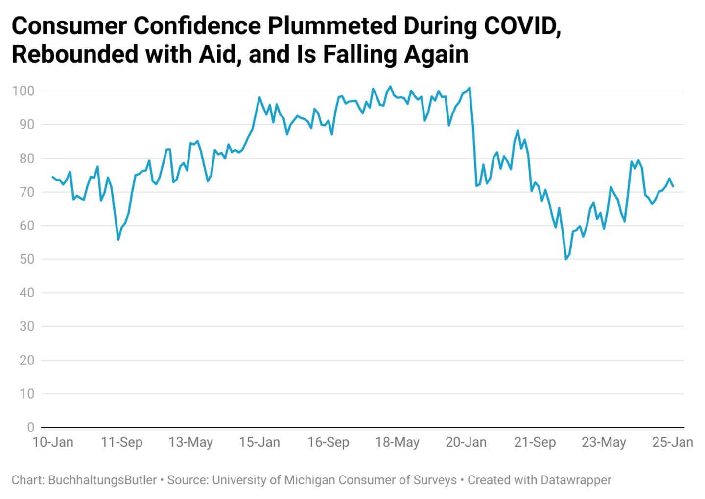In early 2020, as the pandemic triggered mass layoffs and economic shutdowns, consumer sentiment plummeted. However, it rebounded when relief measures such as stimulus payments, expanded unemployment benefits, and enhanced child tax credits took effect. These policies provided millions of households with a financial cushion, stabilizing consumer spending and reducing economic uncertainty.