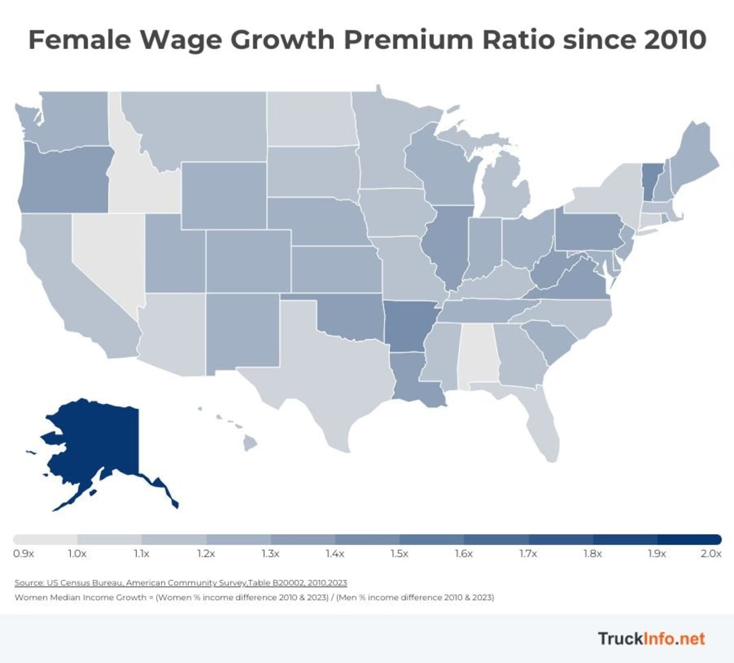 In Vermont, female wages have grown 136% faster than male wages since 2010. While an outlier, the majority of states have seen female wages grow 120%+ faster than male wages over the same period.