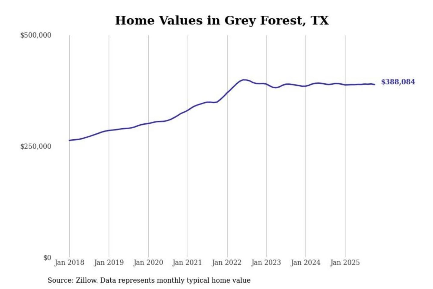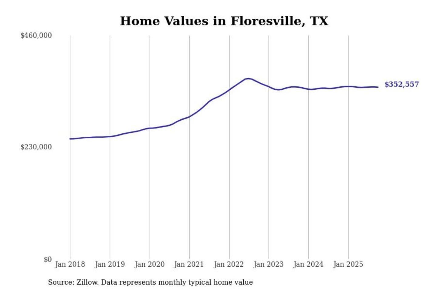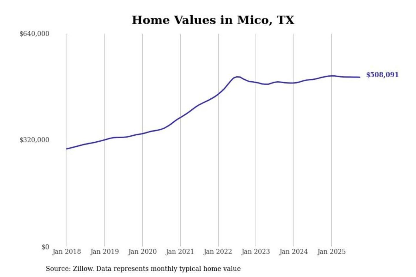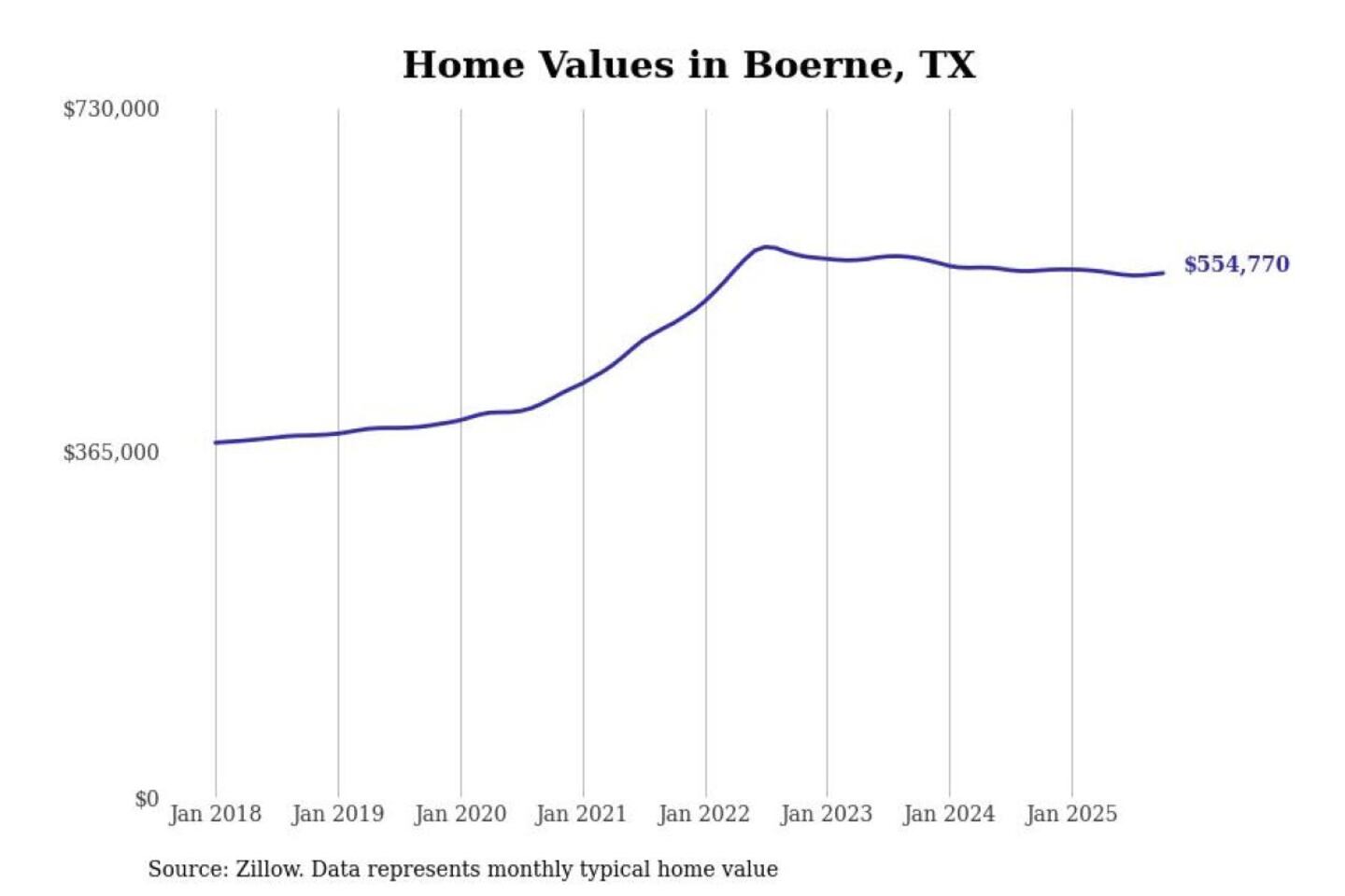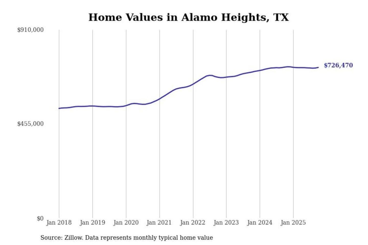 Stacker compiled a list of cities with the most expensive homes in the San Antonio-New Braunfels, TX metro area using data from Zillow. Charts show the monthly typical home value since January 2018.