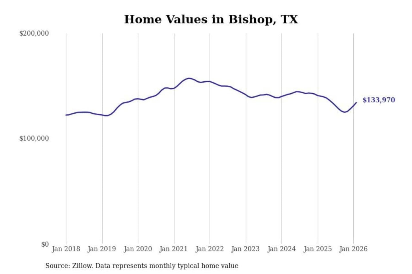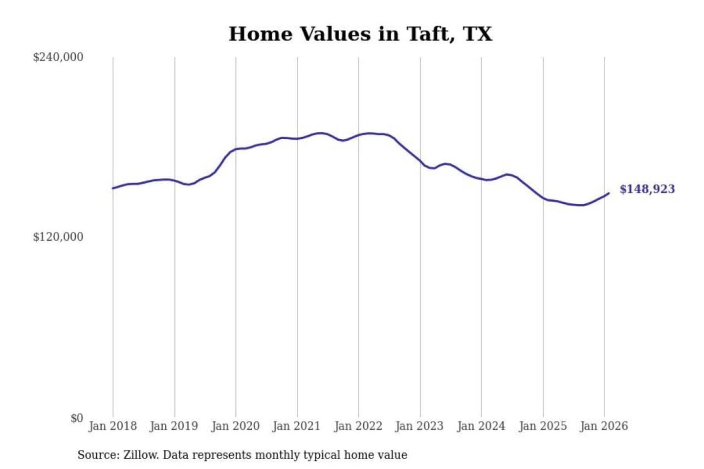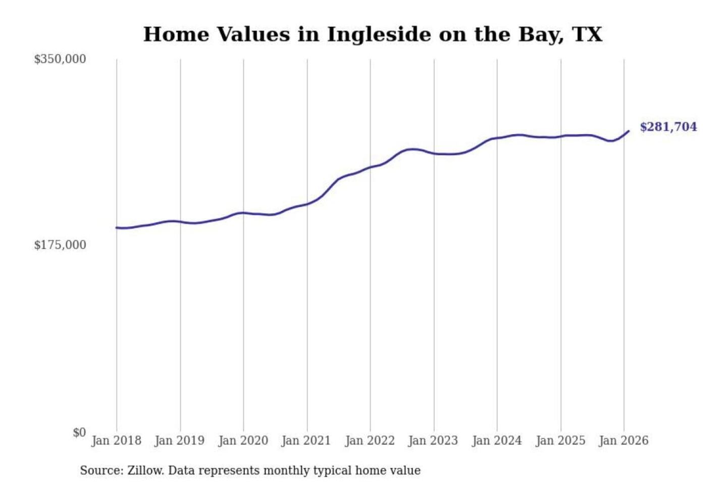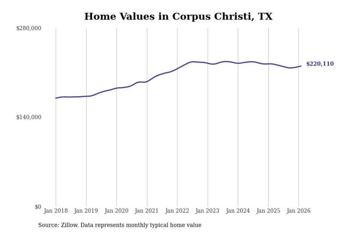 Stacker compiled a list of cities with the most expensive homes in the Corpus Christi, TX metro area using data from Zillow. Charts show the monthly typical home value since January 2018.
