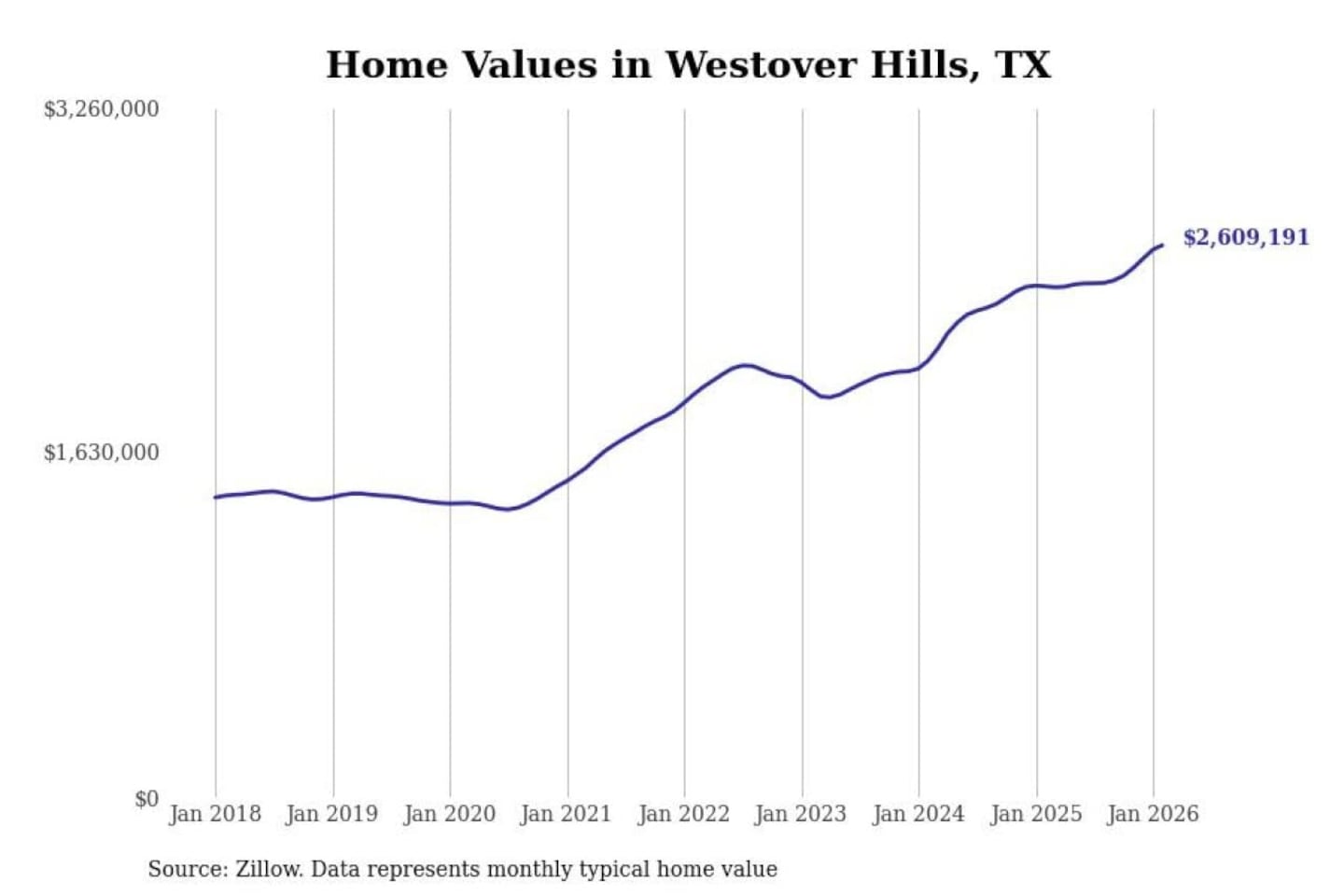- Typical home value: $2,609,191