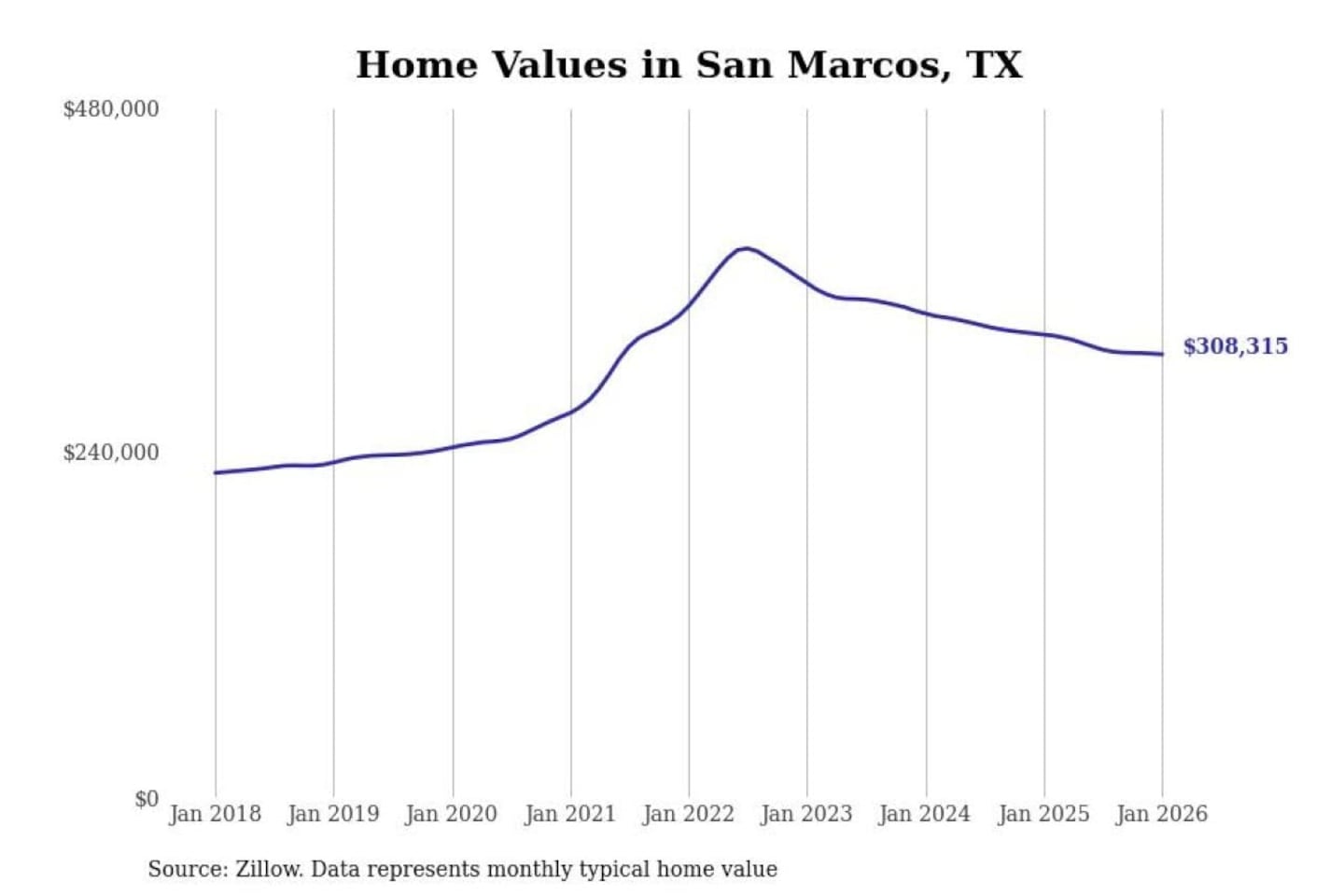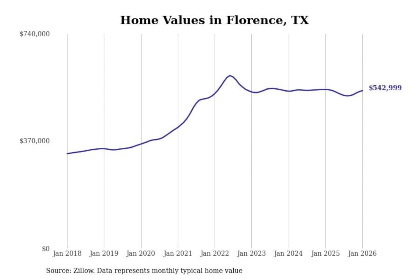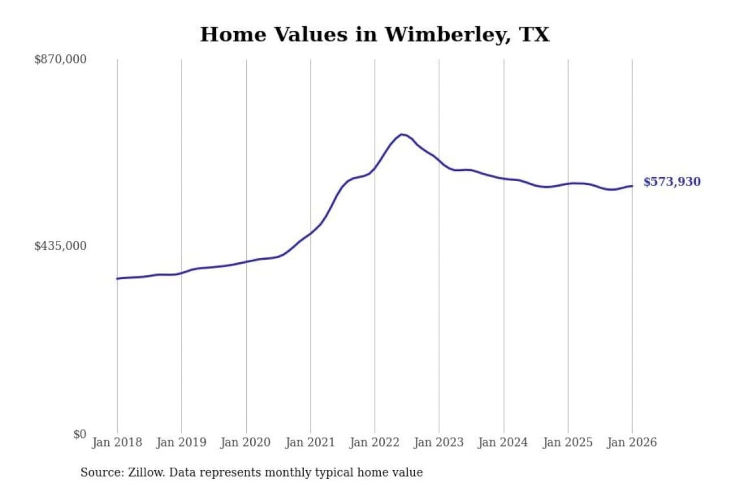 Stacker compiled a list of cities with the most expensive homes in the Austin-Round Rock-Georgetown, TX metro area using data from Zillow. Charts show the monthly typical home value since January 2018.