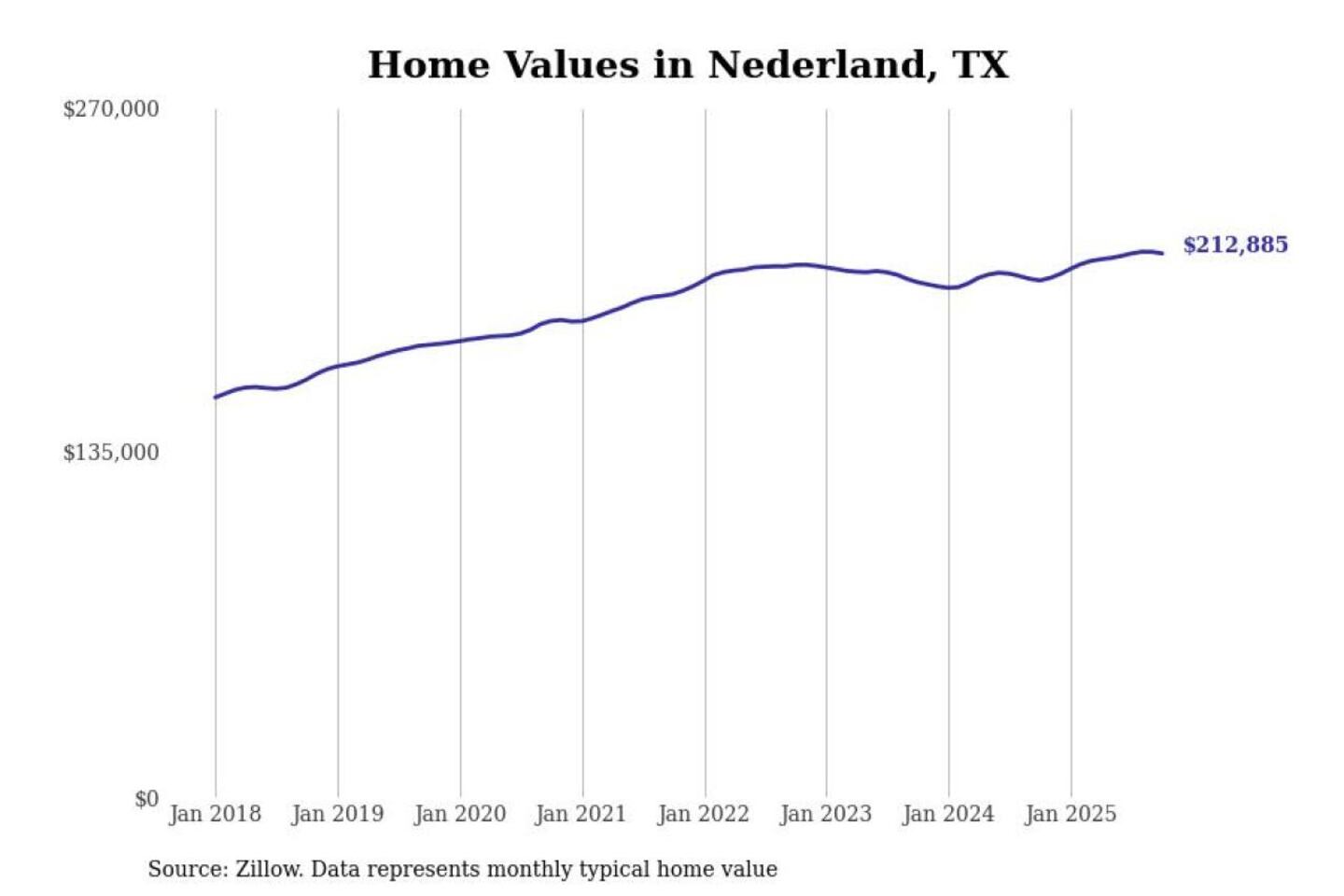 Stacker compiled a list of cities with the most expensive homes in the Beaumont metro area using data from Zillow. Charts show the monthly typical home value since January 2018. All 22 cities and towns with data available were included in the list.
