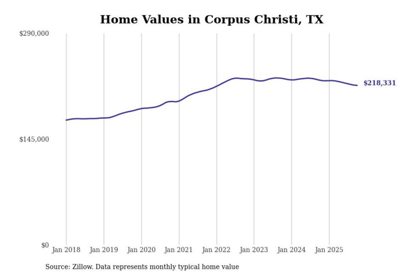 Stacker compiled a list of cities with the most expensive homes in the Corpus Christi metro area using data from Zillow. Charts show the monthly typical home value since January 2018. All 12 cities and towns with data available were included in the list.