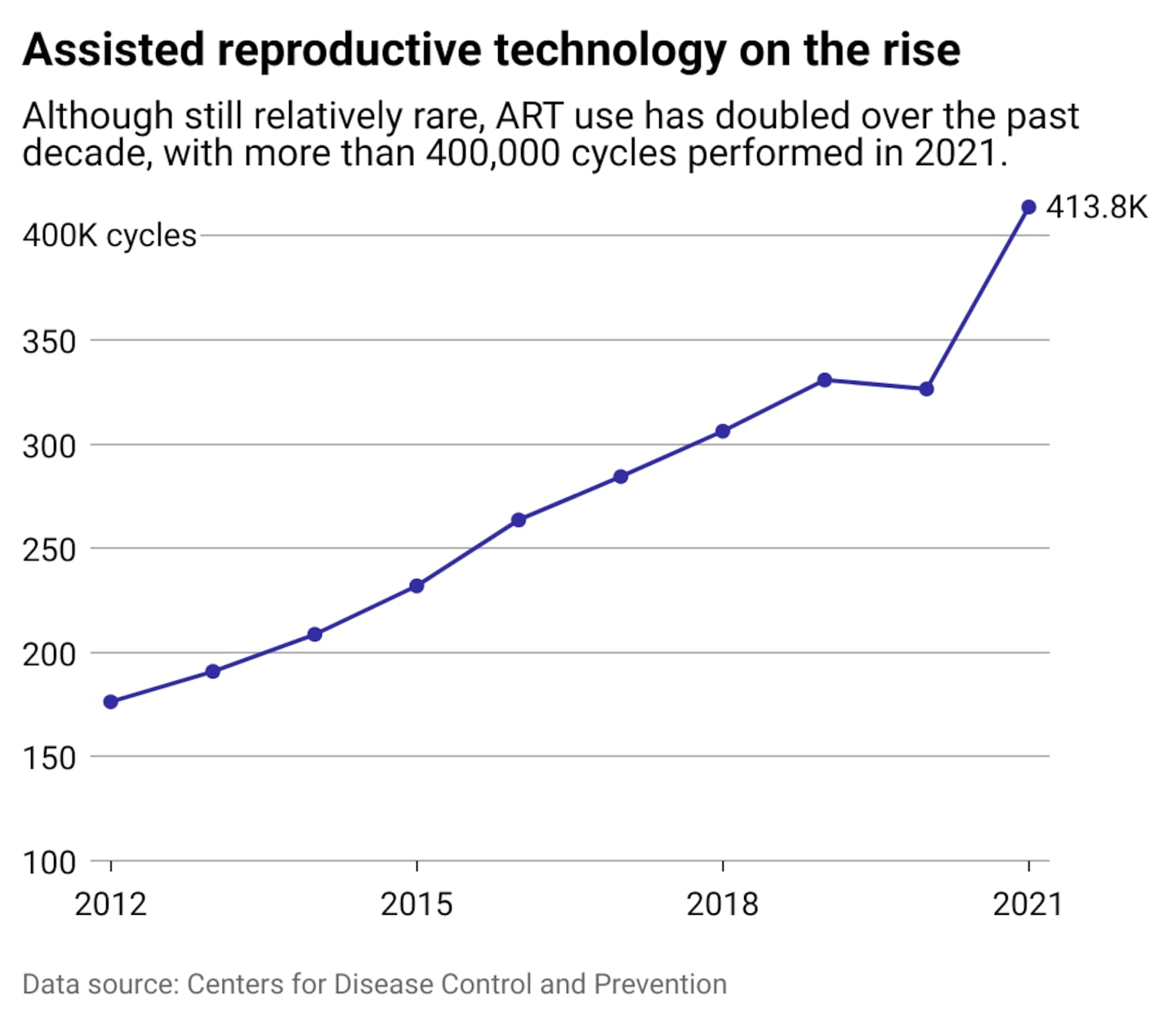 ART procedures were first developed over four decades ago, radically expanding possibilities for many families unable to conceive naturally. Incredible innovations in the field, increased awareness about infertility, and a rise of employers offering fertility benefits to their workforce—40% of U.S. organizations in 2022 alone—have helped to normalize infertility treatments.