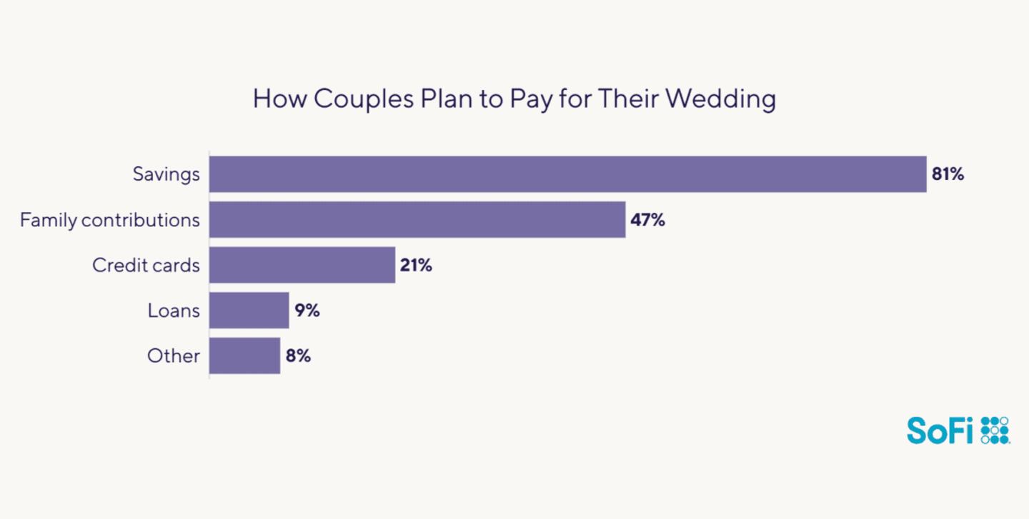 Most couples want to foot at least some of their wedding bill themselves: 81% are aiming to put their savings toward it. But many couples also need financial help from family or plan to borrow the funds to help cover the cost of their big day.