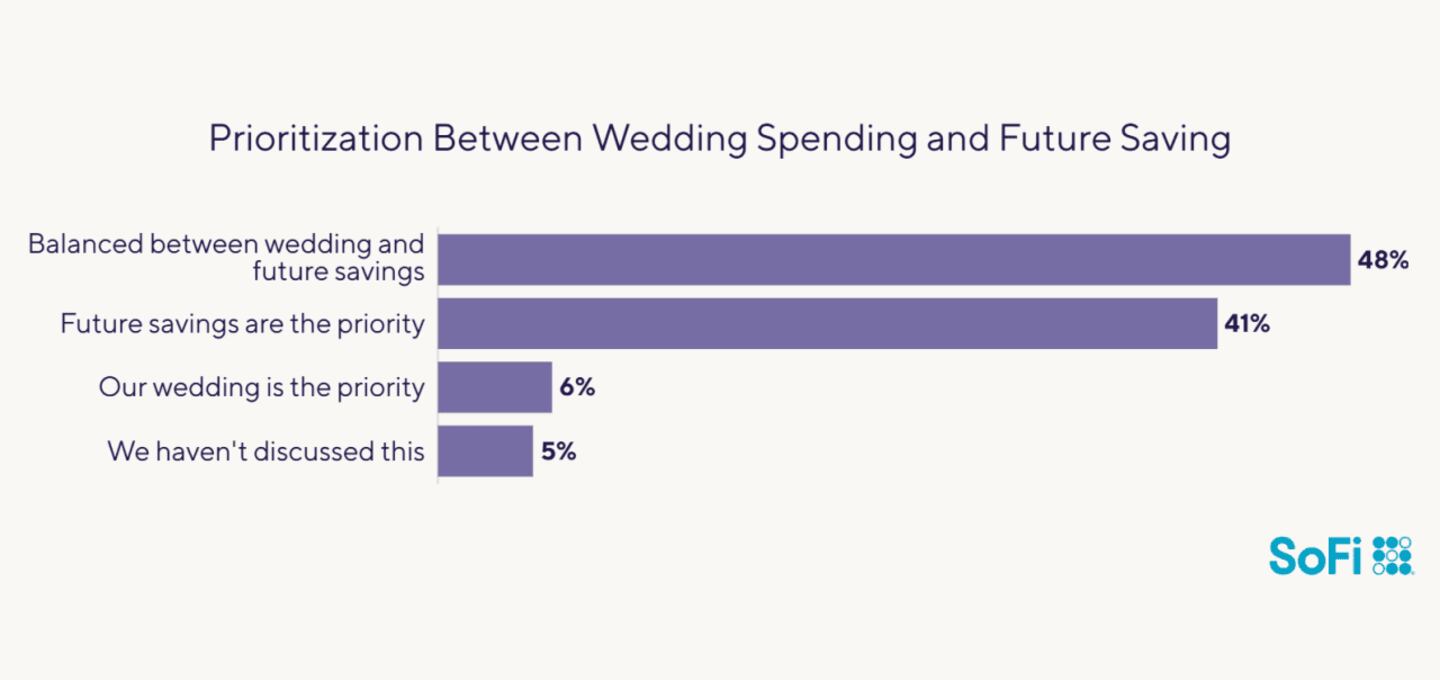 While a wedding is a milestone day in a couple's relationship, saving for the future is also very important to respondents of SoFi's Love and Money survey: A full 41% said putting money away for their future together is a bigger priority than paying for their wedding.