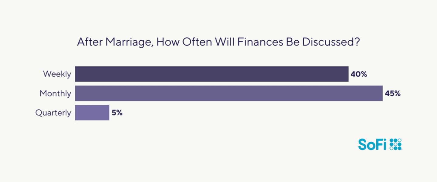 The participants in the SoFi survey seem to be on the right track: Three-quarters said they freely discuss finances with their partner. Another 18% are somewhat comfortable having money talks, while around 6% are either neutral or somewhat uncomfortable. Better yet: Not even one survey respondent said they were very uncomfortable discussing finances with their future spouse.