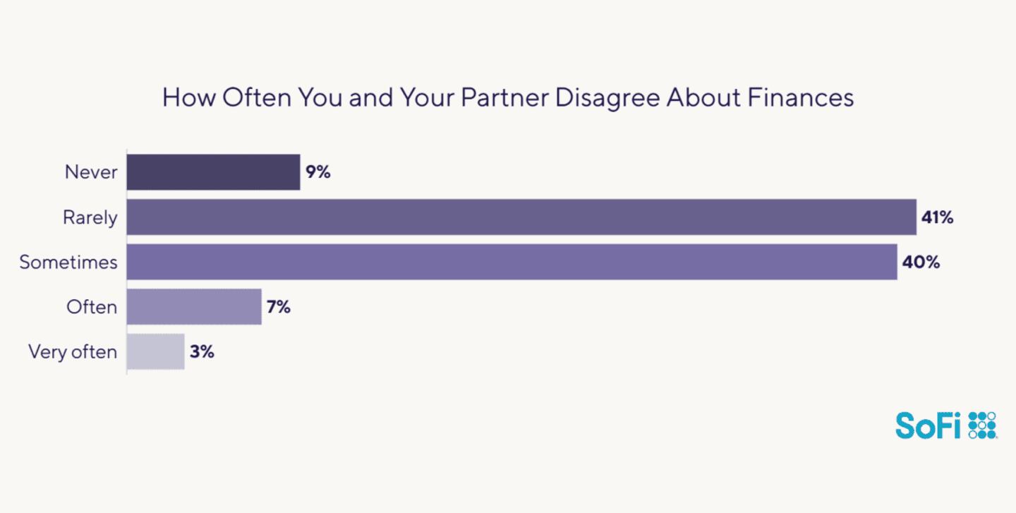 When asked how often they disagree about financial matters, the top answer was “rarely.”