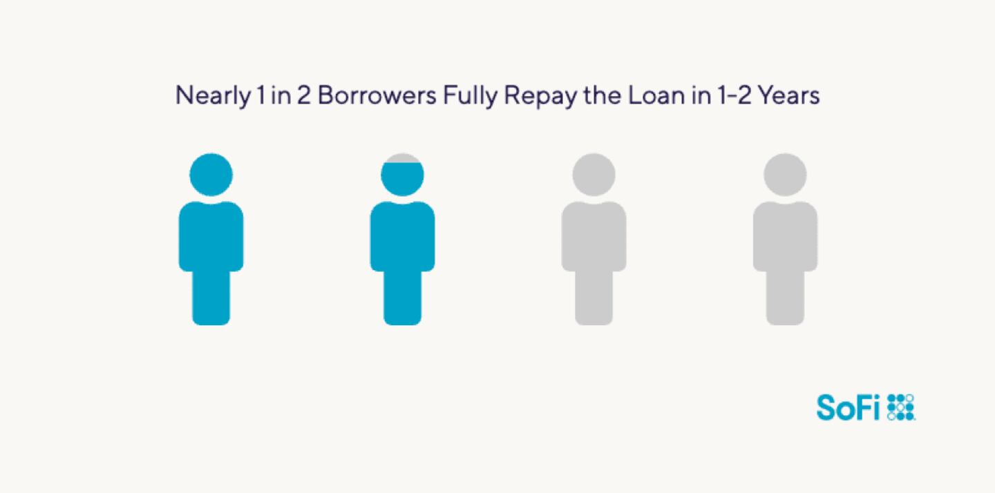- 33% of people with one- to two-year loans were able to pay them off in 12 months or sooner.