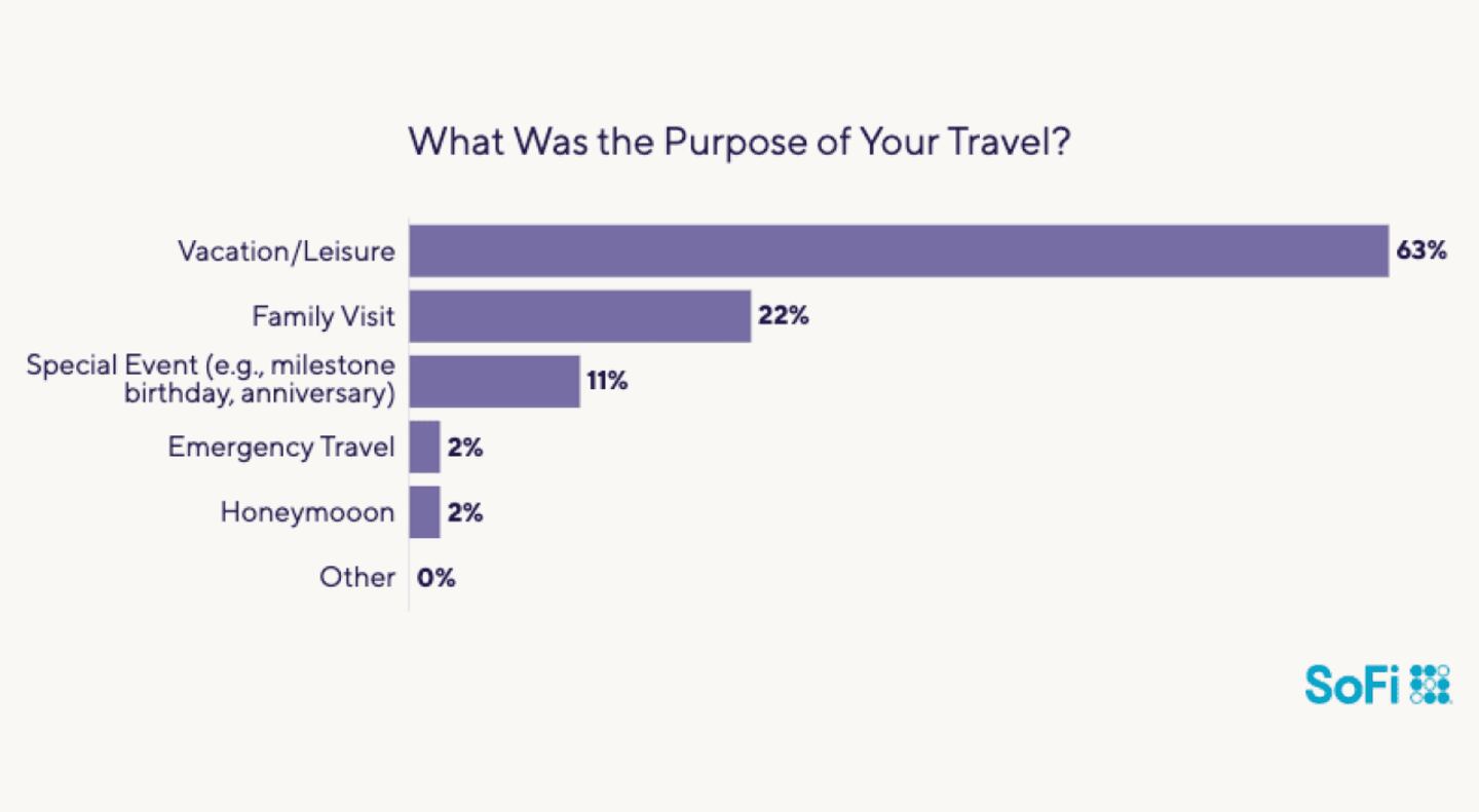 To help cover travel, 5% of respondents secured vacation loans. Almost two-thirds of this group used their money for leisure travel, and most of the rest (22%) spent their cash on family visits.