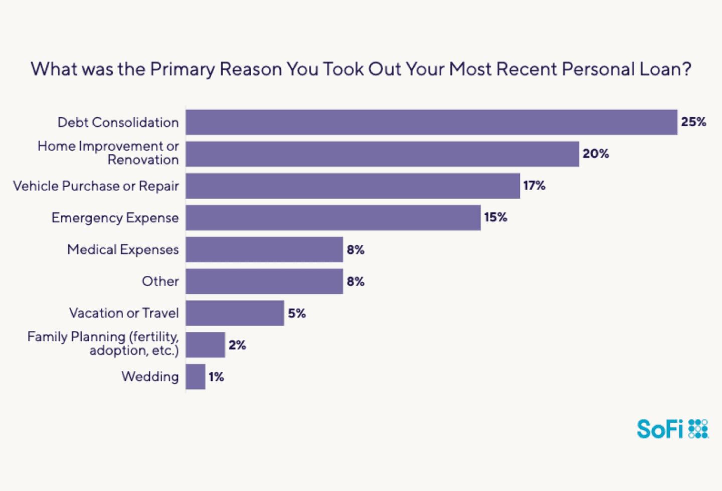 The uses of personal loans are many and varied, and SoFi's survey respondents named an array of reasons for taking out personal loans. Some had big plans for the money, such as renovating their home, buying a car, traveling, or hosting a wedding.