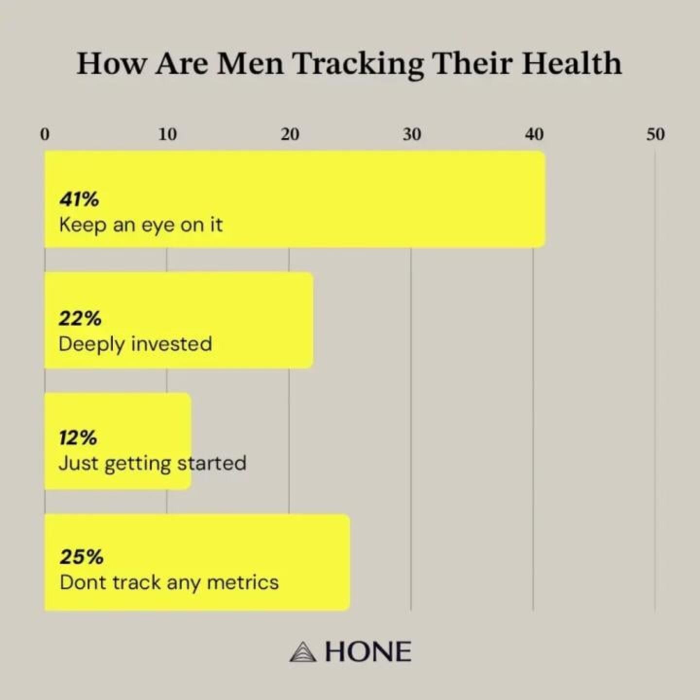 In a recent Hone Health survey of more than 700 men in their online community, nearly three-quarters reported that they actively track health data. One in five said they were "deeply invested" in doing so, monitoring various data points daily and using them to guide their decisions around training, recovery, and diet.