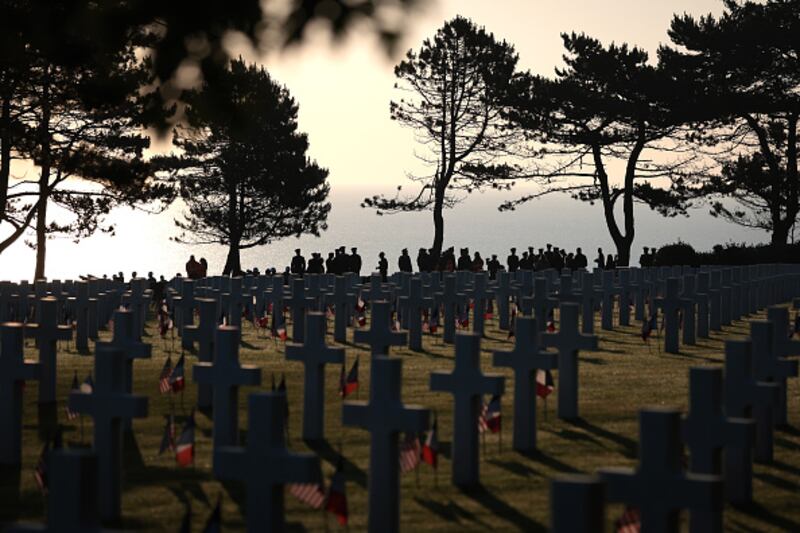D-Day 80th Anniversary COLLEVILLE-SUR-MER, FRANCE - JUNE 06: The early morning sun rises at the Normandy American Cemetery above Omaha Beach on the 80th anniversary of D-Day on June 06, 2024 in Colleville-sur-Mer, France. U.S. President Joe Biden will join veterans, families, political leaders and military personnel in gathering in Normandy to commemorate D-Day, which paved the way for the Allied victory over Germany in World War II. (Photo by Win McNamee/Getty Images) (Win McNamee/Getty Images)
