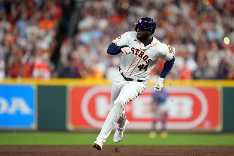 Yordan Alvarez followed with a triple, but Rangers starter Max Scherzer got out of the inning when Michael Brantley lined out to shortstop.