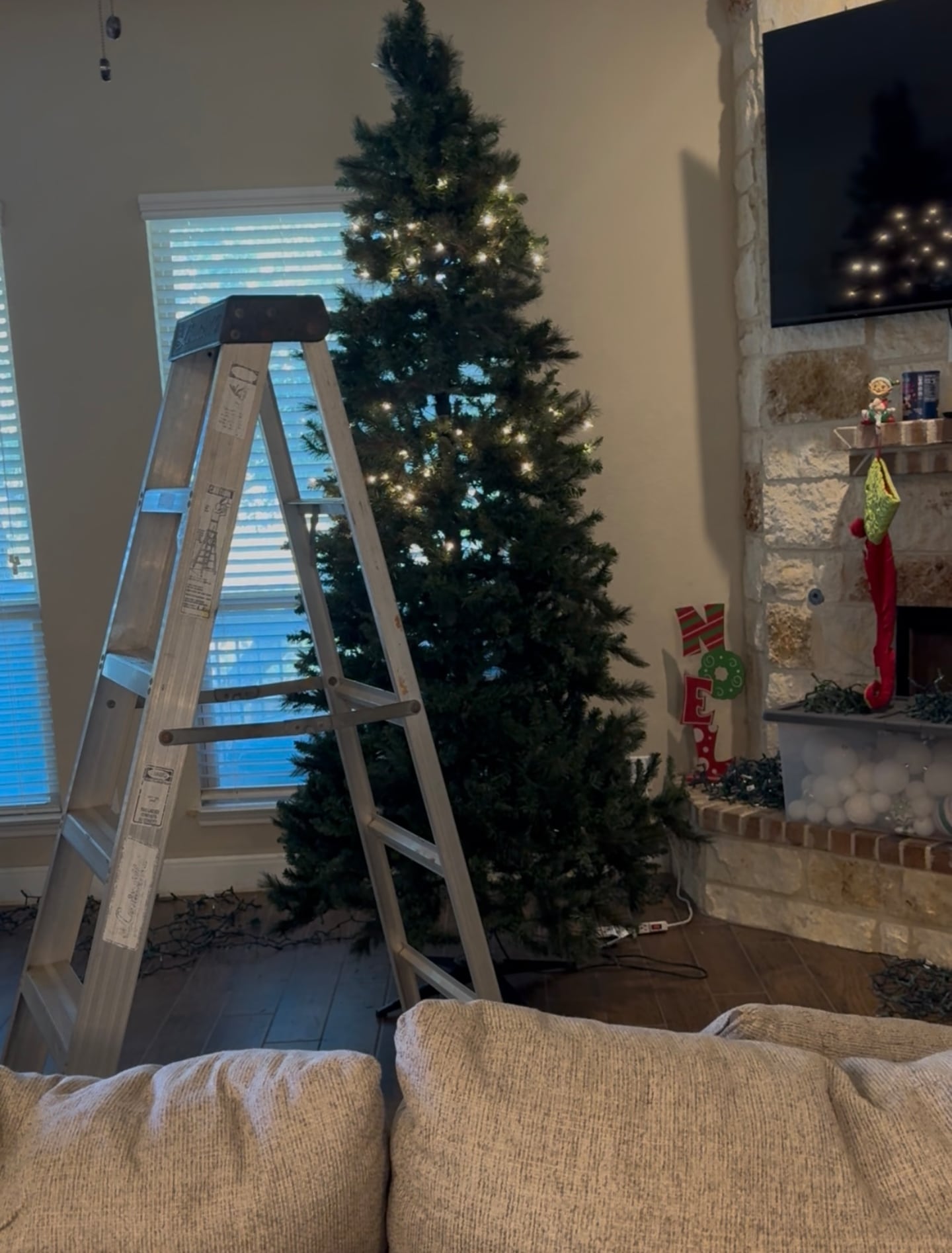 What I didn’t take a picture of was the tree after it was lit and the lights suddenly went out because I blew a fuse. I had to go through every strand and find the one that caused it. Little hint...you can’t plug more than 3 strands into eachother. FINALLY finished the elf tree.