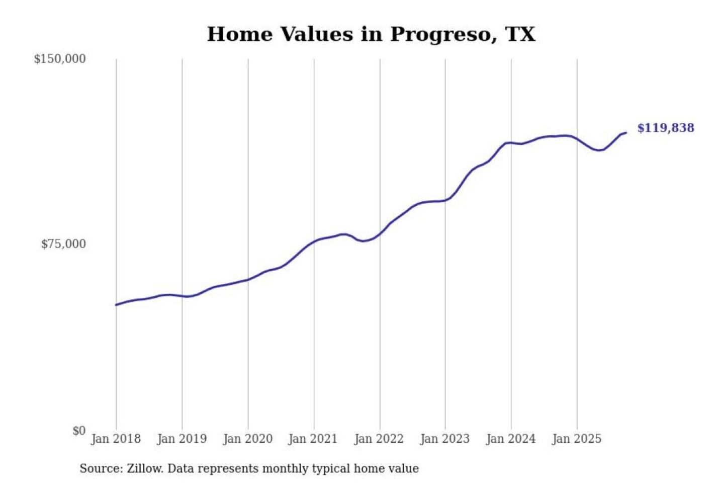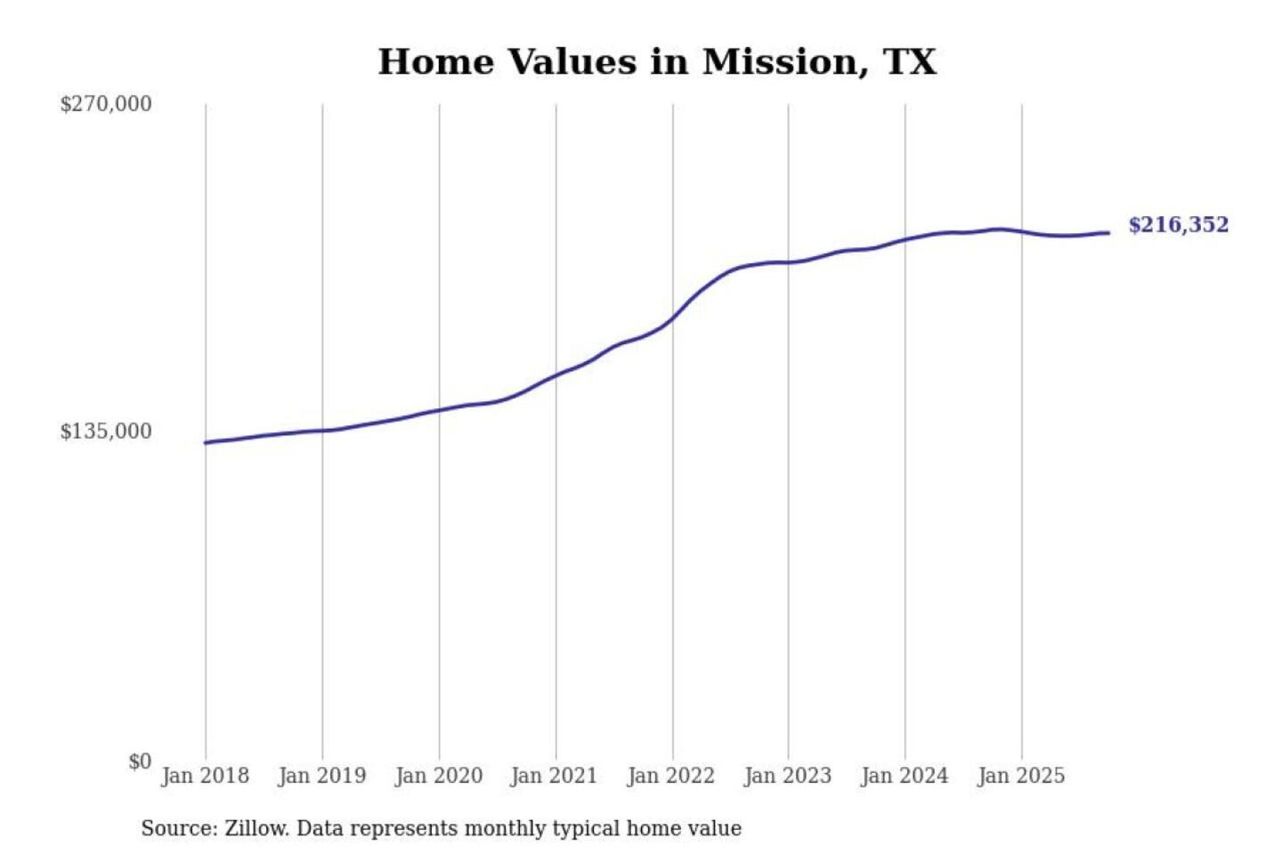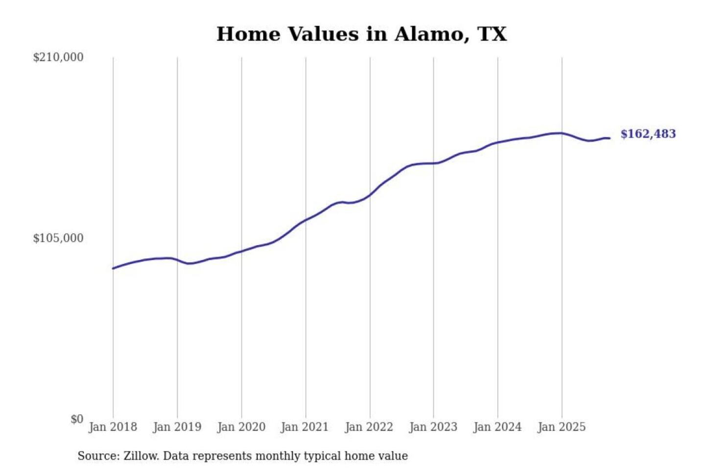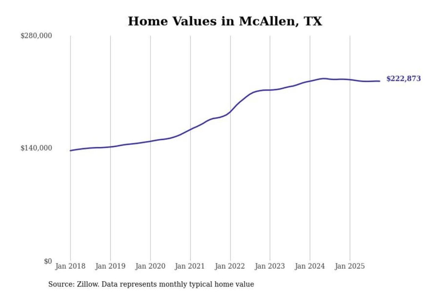 Stacker compiled a list of cities with the most expensive homes in the McAllen-Edinburg-Mission, TX metro area using data from Zillow. Charts show the monthly typical home value since January 2018.